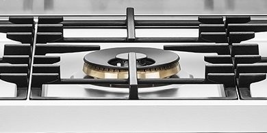 Com design profissional, oferece 5 queimadores Sabaf HE Full Brass em latão maciço que inclui um potente queimador Dual Flame de 5.000 W com ampla variação de potência iniciando em 1.800 W para se desfrutar do calor adequado em todos os tipos de receitas.