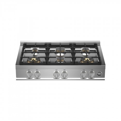 Queimadores profissionais em latão, elegante design com manípulos em metal maciço e robustas trempes em ferro gusa compõem este imponente rangetop Bertazzoni made in Italy, marca com experiência de mais de 130 anos na fabricação de eletrodomésticos premium.