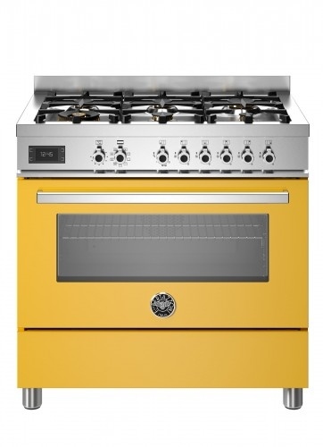 Design profissional refinado com os mais avançados recursos culinários unidos em um imponente fogão made in Italy, na cor amarelo, desenvolvido pela marca com a mais longa experiência na fabricação de fogões no mundo.