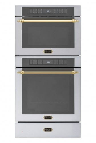 O forno combinado TK38 EXDB V2 compõe elegantes conjuntos com os demais produtos da linha Vintage com os mesmos puxadores tubulares em latão.