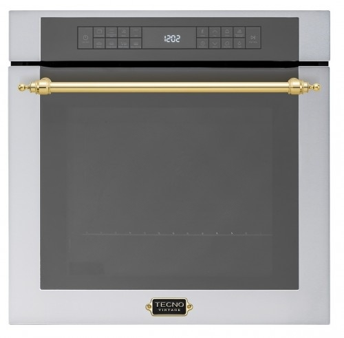 O forno TO73 EXDB V2 compõe elegantes conjuntos com os demais produtos da linha Vintage com os mesmos puxadores tubulares em latão.