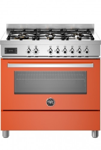 Design profissional refinado com os mais avançados recursos culinários unidos em um imponente fogão made in Italy, na cor laranja, desenvolvido pela marca com a mais longa experiência na fabricação de fogões no mundo.