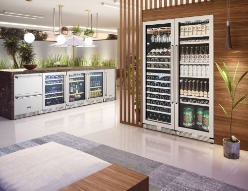 Seu elegante design se integra em ambientes de diferentes estilos podendo ser embutida em um móvel inclusive em par, armazenando até 304 garrafas em 6 diferentes zonas de temperaturas.
