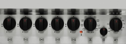 em inox escovado, de piso e de embutir, 5 queimadores a gás, fornos elétricos ventilado de 10 funções e estático com 4 funções, ambos com churrasqueiras, timer digital e largura de 70 cm.