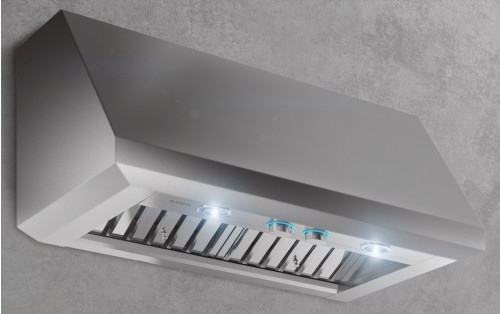 Toda em aço inox não poroso sem cantos vivos com elevada resistência à corrosão e manchas, que proporciona uma elegante aparência à coifa por muito mais tempo.