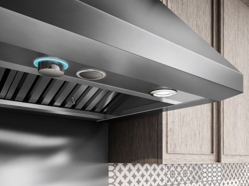 Sua eficiente capacidade de sucção de 2.000 m3/hora com dois motores possui um funcionamento muito silencioso de 38 a 65 dB que proporciona grande conforto acústico ao ser utilizada, indispensável para cozinhas integradas a outros ambientes.