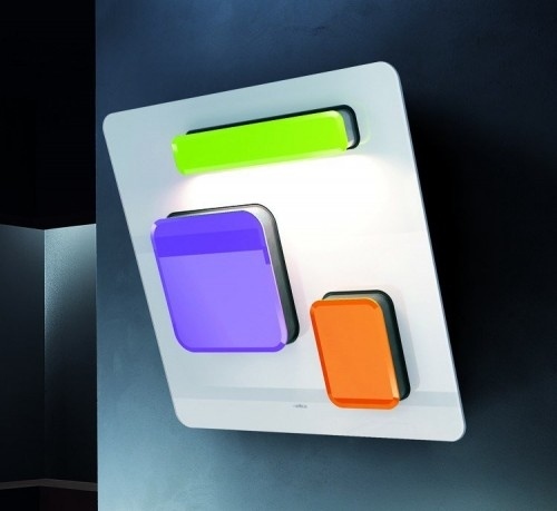 Da superfície quadrangular emergem três painéis em resposta às funções de aspiração e iluminação, criando uma composição equilibrada e divertida.