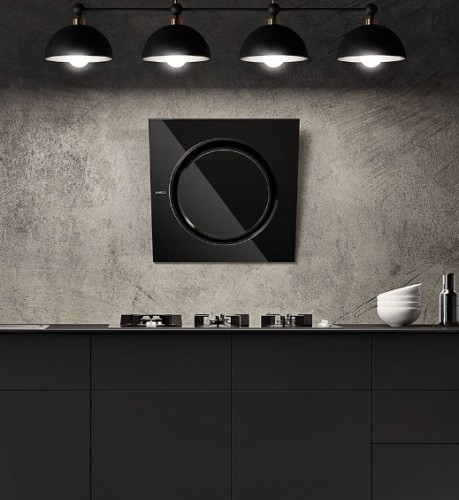 Um quadrado perfeito com um círculo compondo um design com a harmonia dos elementos opostos, desenvolvido pelo estúdio italiano de design ELICA para sofisticados projetos de cozinhas.
