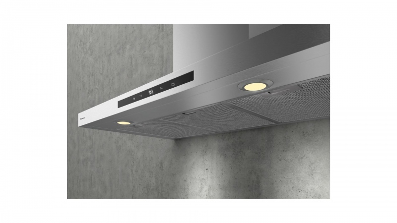 Está é a COIFA VALENÇA DE PAREDE 90 CM em aço inox escovado, com design contemporâneo através de linhas retas e detalhe em vidro preto (4 mm) no painel de comando touch. Além de valorizar sua cozinha irá garantir um momento de cocção mais agradável com renovação de ar de 1.000 m³/h. A aspiração é central com 4 velocidades de sucção, pode ser instalada no modo depuração ou exaustão.