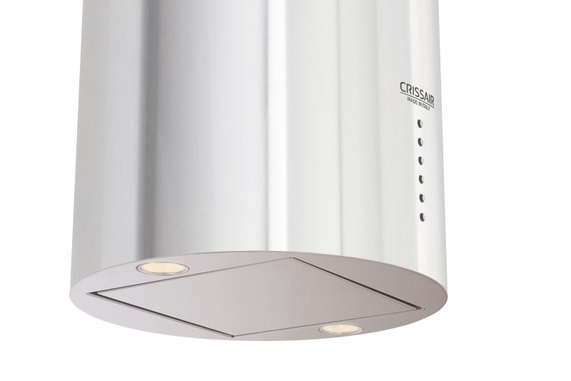 A coifa Isola Cilindro G4 é produzida em aço inox, possui comando eletrônico iluminado e uma vazão de 1.050m³/h.