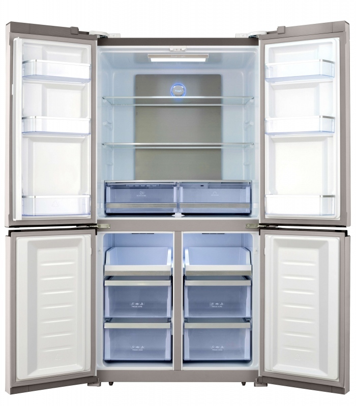 O refrigerador Four Door RFD 540 possui a capacidade total de 542 litros, sendo 367L no refrigerador e 175L no freezer. Sua iluminação interna de LED na parte superior do gabinete atua nos dois lados, não tendo dessa forma nenhum lado sombreado