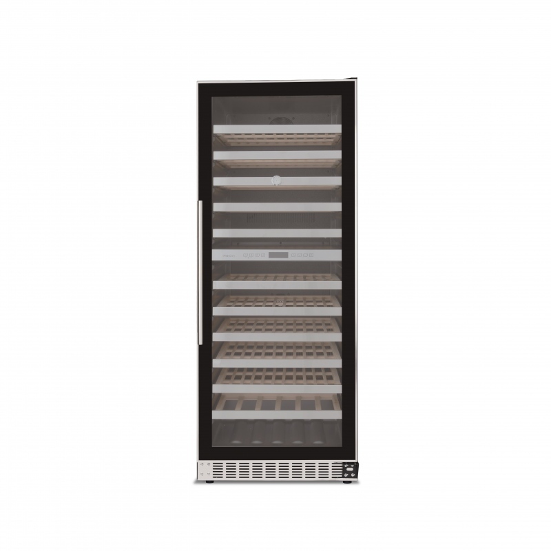 A temperatura das duas zonas podem ser ajustadas individualmente, o termostato pode ser programado no intervalo entre 5°C até 22 °C conforme a recomendação do seu vinho, sendo possível também colocar a mesma temperatura em ambas as zonas simultâneamente. O modelo ainda conta com iluminação em LED, prateleiras em madeira faia anti fungo, corrediças telescópicas, portas reversíveis e vidro e-low.