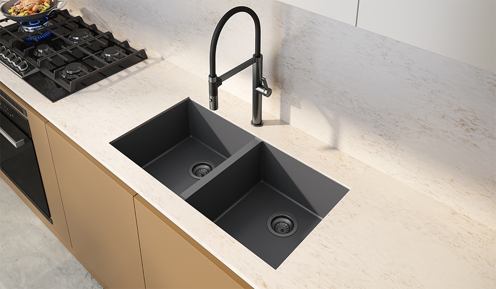 A PRIMACCORE DUPLA PVD NANO BLACK em aço inox de 1.0 mm, com seu acabamento Black Matte, proporciona elegância e modernidade para sua cozinha, uma verdadeira obra prima.