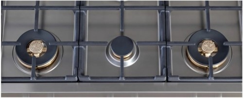 Design profissional refinado com os mais avançados recursos culinários unidos em um imponente range top made in Italy, em aço inox escovado, desenvolvido pela marca com a mais longa experiência na fabricação de fogões no mundo.