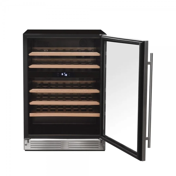 Praticidade e exclusividade, esta adega possui duas zonas de temperatura controladas individualmente, facilitando a armazenagem de vinhos diferentes ao mesmo tempo.