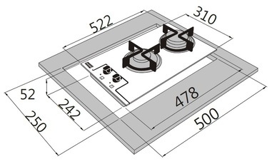 Acabamento: vidro Dimensão: 31x52,2cm Tensão: bivolt Frequência: 50/60 Hz Potência: 5.000 W Queimadores: 1 Rápido - 3.000 W 1 Semirrápido – 2.000 W