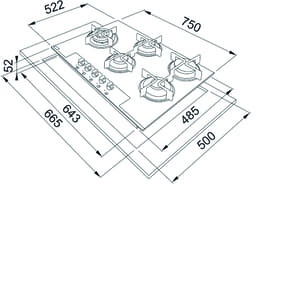 Acabamento: vidro branco Dimensão: 75x52,2cm Tensão: bivolt Frequência: 50/60 Hz Potência: 13.000 W Queimadores: 1 Supertripla chama – 4.000 W 1 Rápido - 3.000 W 3 Semirrápidos – 2.000 W cada