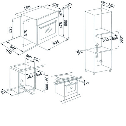 Acabamento: vidro preto Dimensão: 59,5x59,5cm Grade: 2 Bandeja: 2 Tensão: 220v Frequência: 50/60 Hz Consumo: 2,6 kWh Potência: 2.600 W 7 funções manuais