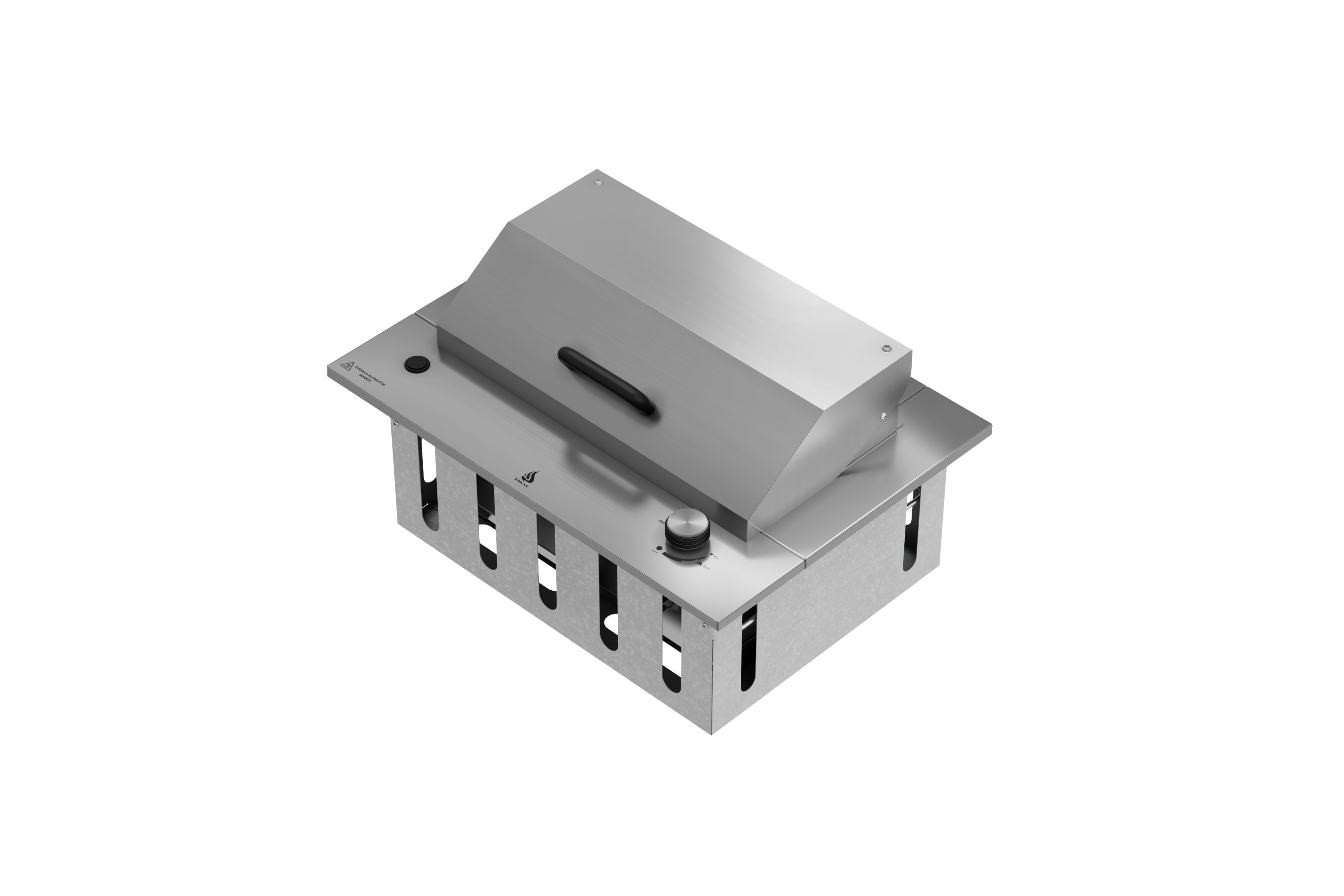 - 100% em aço inox 304: Grelhas, tampo, bandeja coletora de gordura; suportes para espetos; Aço Inox 430: Cocho;