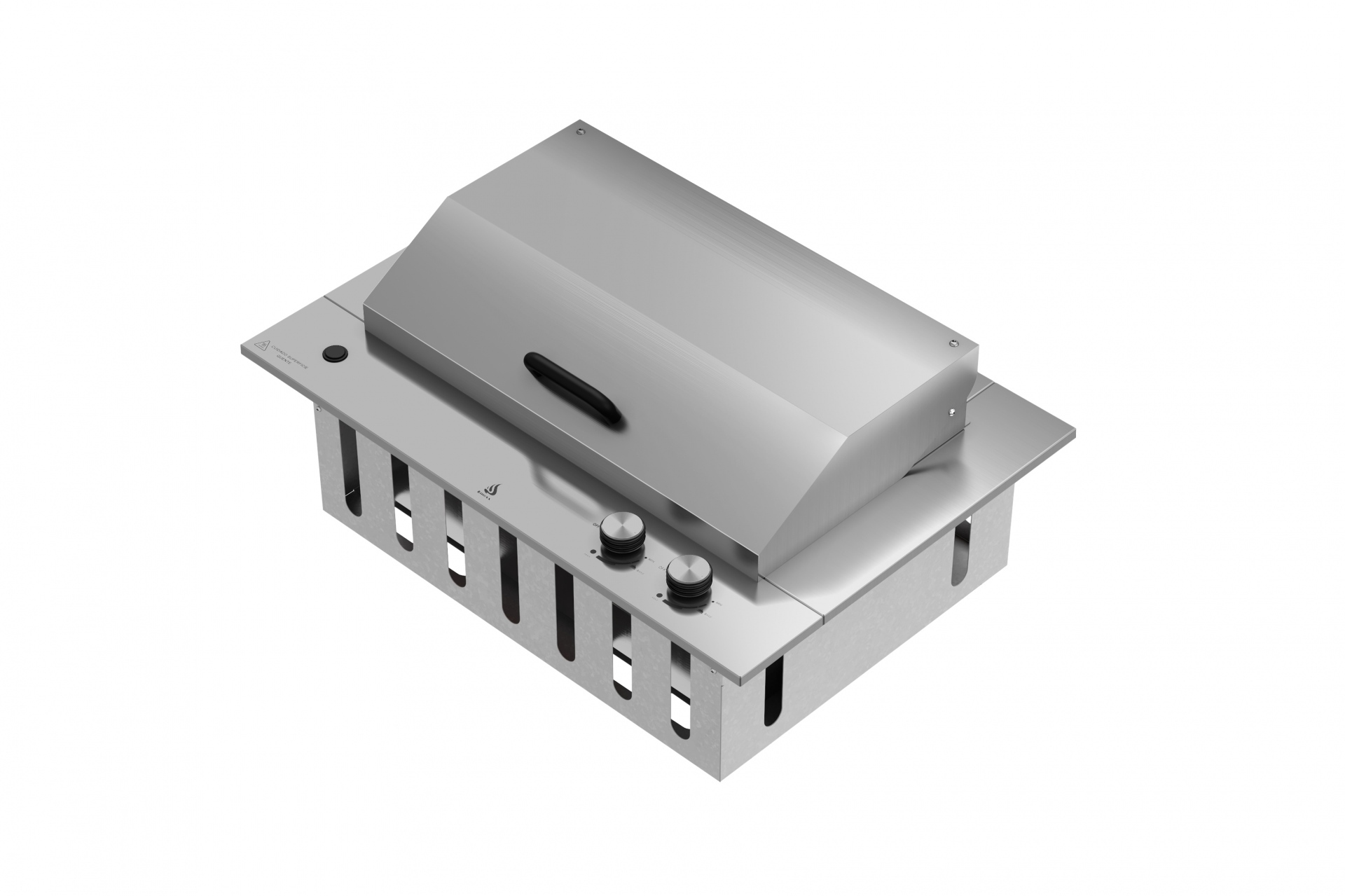 - 100% em aço inox Aço inox 304: Grelhas, tampo, bandeja coletora de gordura, suportes para espetos; Aço Inox 430: Cocho;