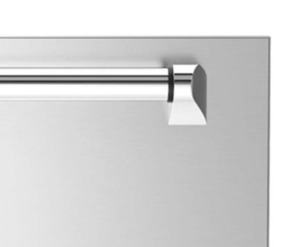Porta da lava-louças em inox, permite aplicar outros acabamentos e puxadores selecionados.